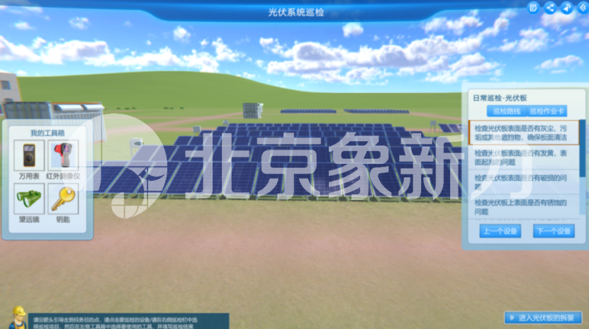 然而,光伏产业的迅猛发展也暴露出人才供给的短板——传统实训模式受限于高成本设备、高风险操作和有限的教学场景,难以满足行业对高素质技术人才的需求。为解决这一难题,北京象新力科技有限公司研发了“光伏电站智能化运维虚拟仿真实验软件”,以先进的数字化手段构建起一个与现实世界高度吻合的虚拟光伏电站,使学生无需走出课堂,就能全方位、多角度地接触和探究光伏电站智能化运维。