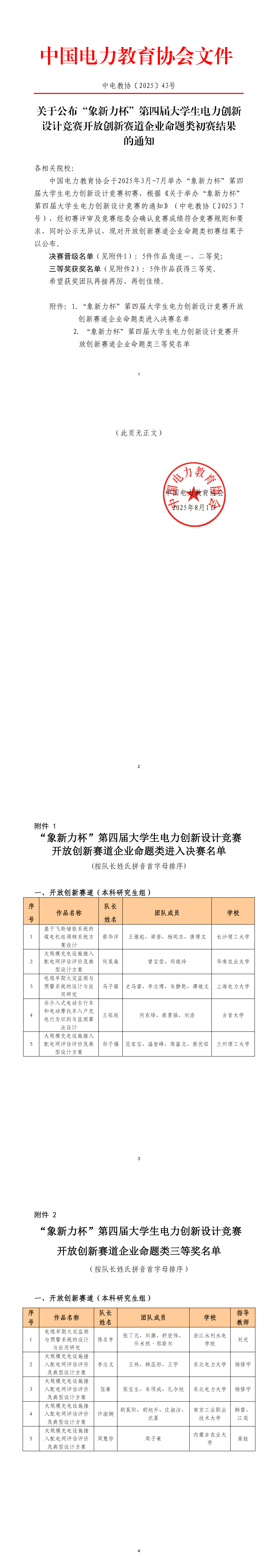 第四届大学生电力创新设计竞赛开放创新赛道企业命题类初赛结果 发布时间:2025-08-01 11:39 浏览量:355 附件:中电教协〔2025〕43号关于公布“象新力杯”第四届大学生电力创新设计竞赛开放创新赛道企业命题类初赛结果的通知.pdf