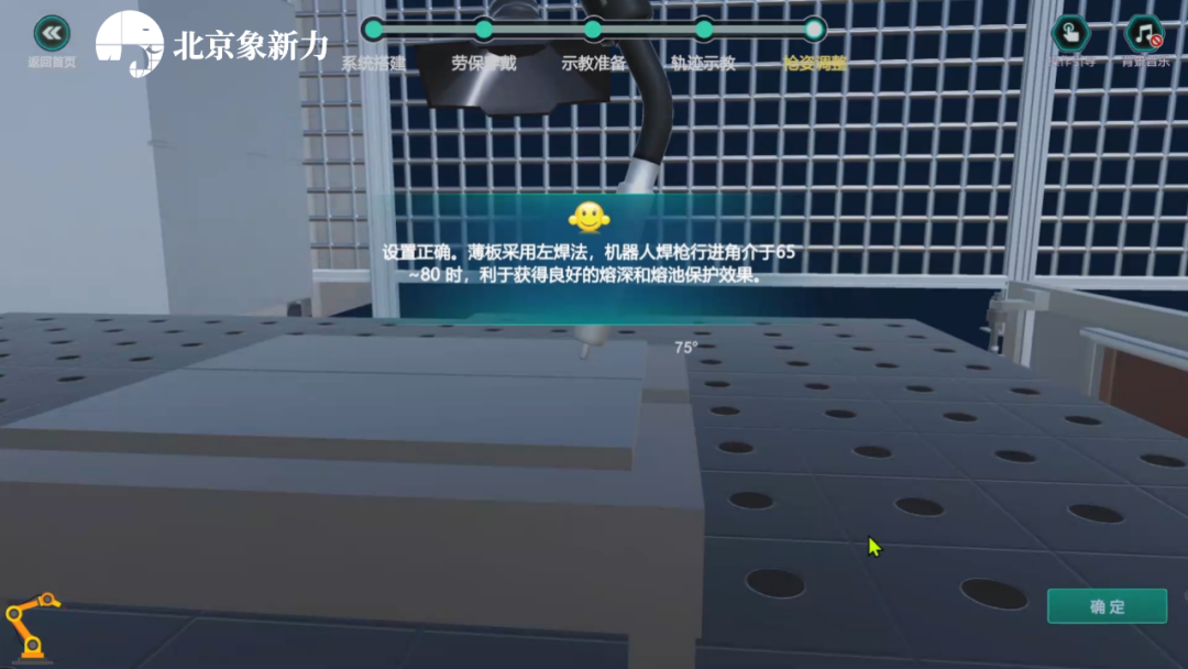 (3)以交互为核心,让教与学“热起来”。本产品立足职业岗位活动关键之处,精心设计交互步骤和信息提示,尤其是末端工具姿态、核心工艺参数等要素调整对机器人作业质量影响。通过沉浸式虚拟交互体验学习,提升教与学的互动性,激发学生的内生学习动力。