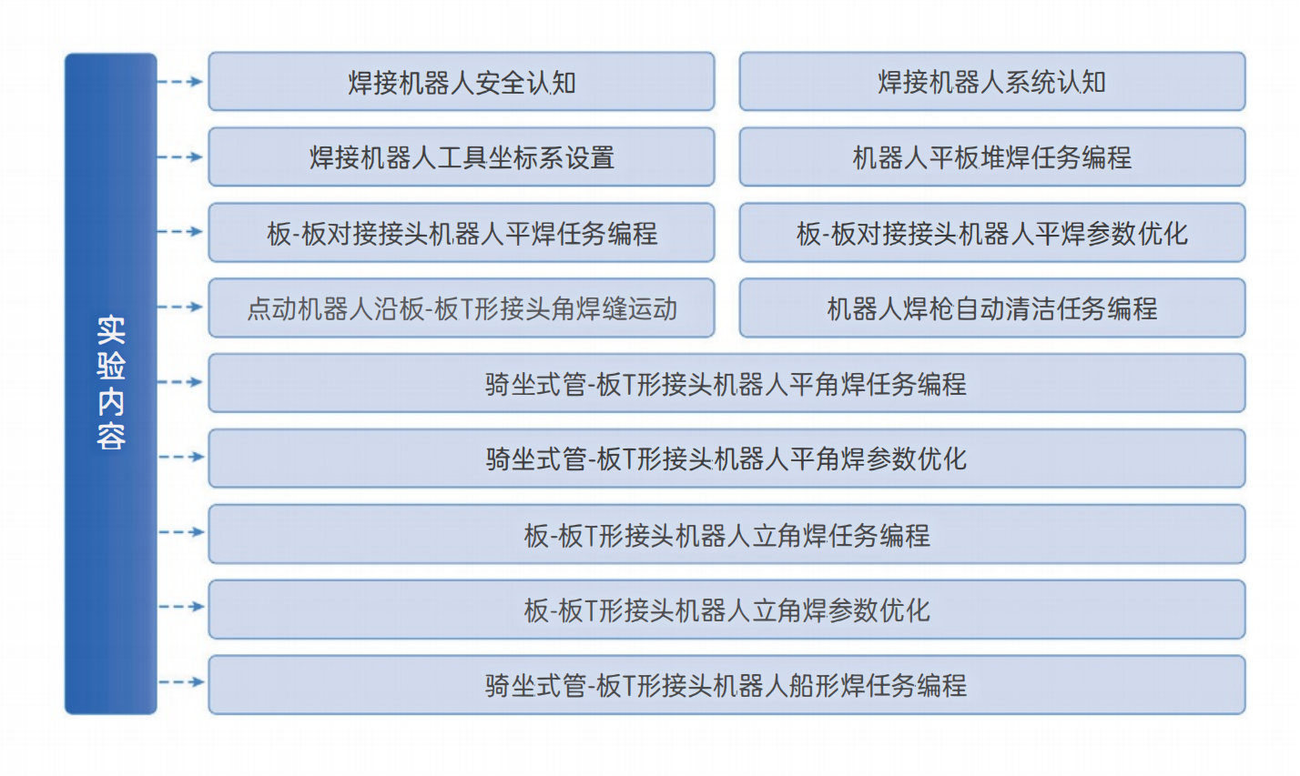 2、产品“复刻”机器人焊接工作站等真实工程情境,以及机器人平角焊、立角焊、船形焊等多样化任务,再现机器人工艺动作和物理现象,有效拓展机器人实验(实训)的广度。