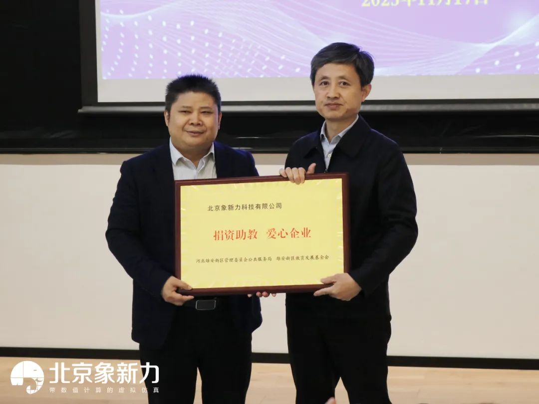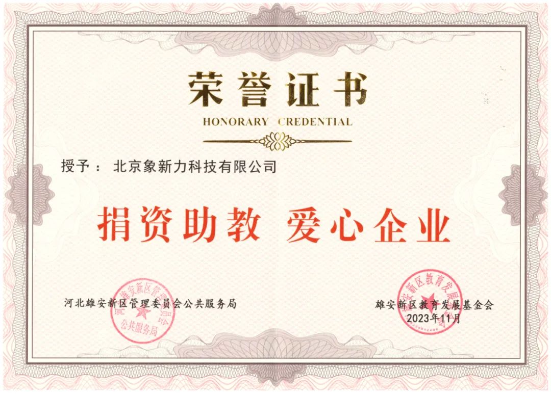 在活动上,雄安新区公共服务局局长高立春为北京象新力颁发“捐资助教 爱心企业”荣誉牌匾。北京象新力作为国家高新技术企业、北京市“专精特新”中小企业,在雄安新区教育发展事业上,一直秉持着积极的态度和深刻的社会责任感。通过定向捐赠在新区开展“雄安支教团励志奖学金计划”,旨在鼓励更多的支教团成员积极参与新区的教育事业,并为学生提供更好的学习环境和发展平台。
