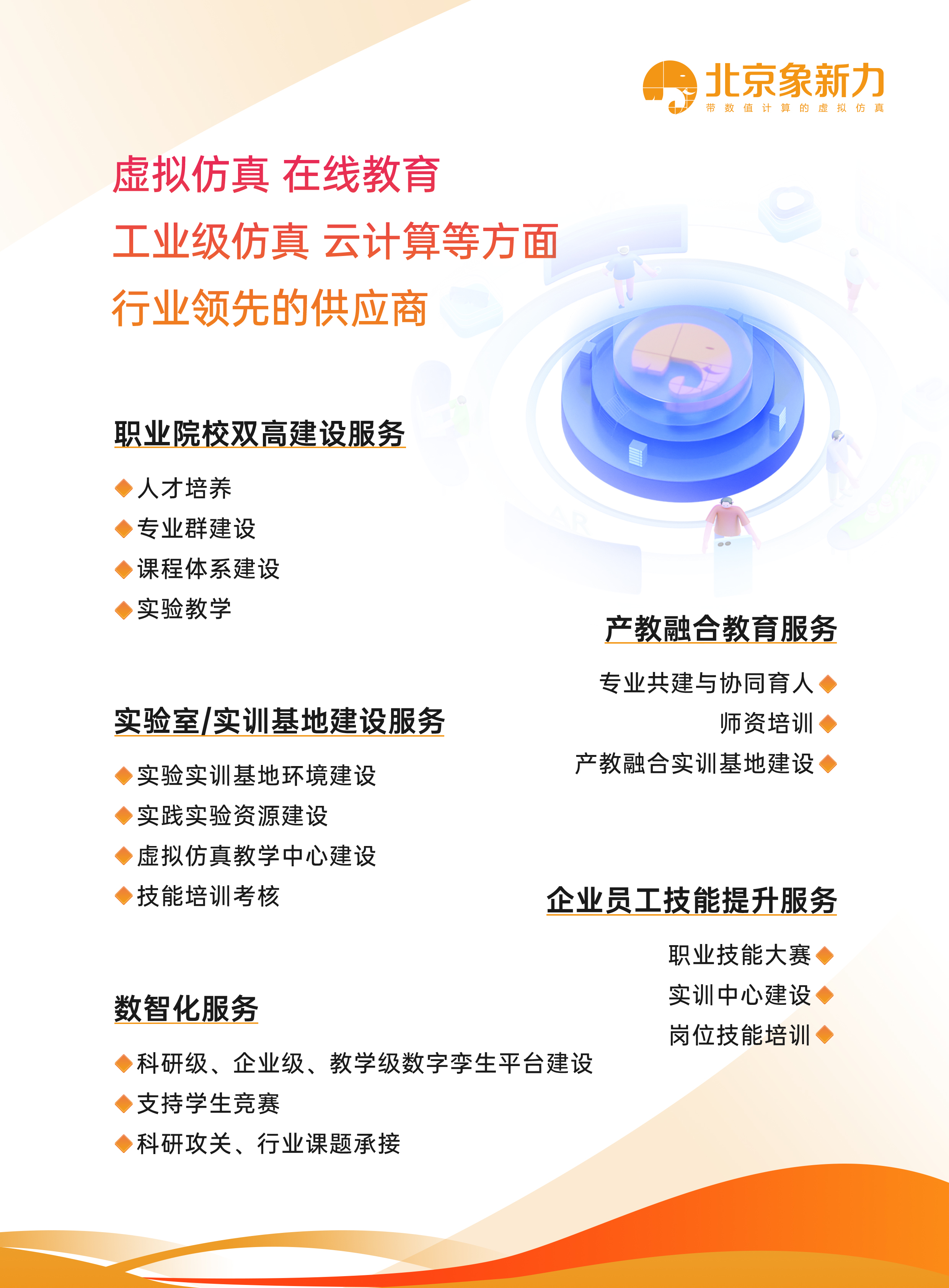 象新力科技作为企业与院校、人才的桥梁与纽带,为院校赋能提供专业实践教学解决方案,为企业赋能提供符合岗位需求的优质人才,从专业建设、课程开发、技能培训、产教融合等维度助力高校教学和数智化人才培训,积极推动教育信息化,实现教育现代化。