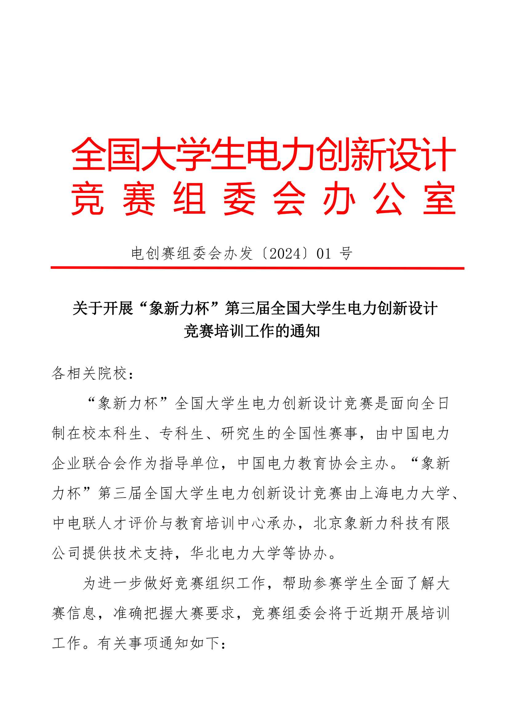 关于开展“象新力杯”第三届全国大学生电力创新设计竞赛培训工作的通知.pdf