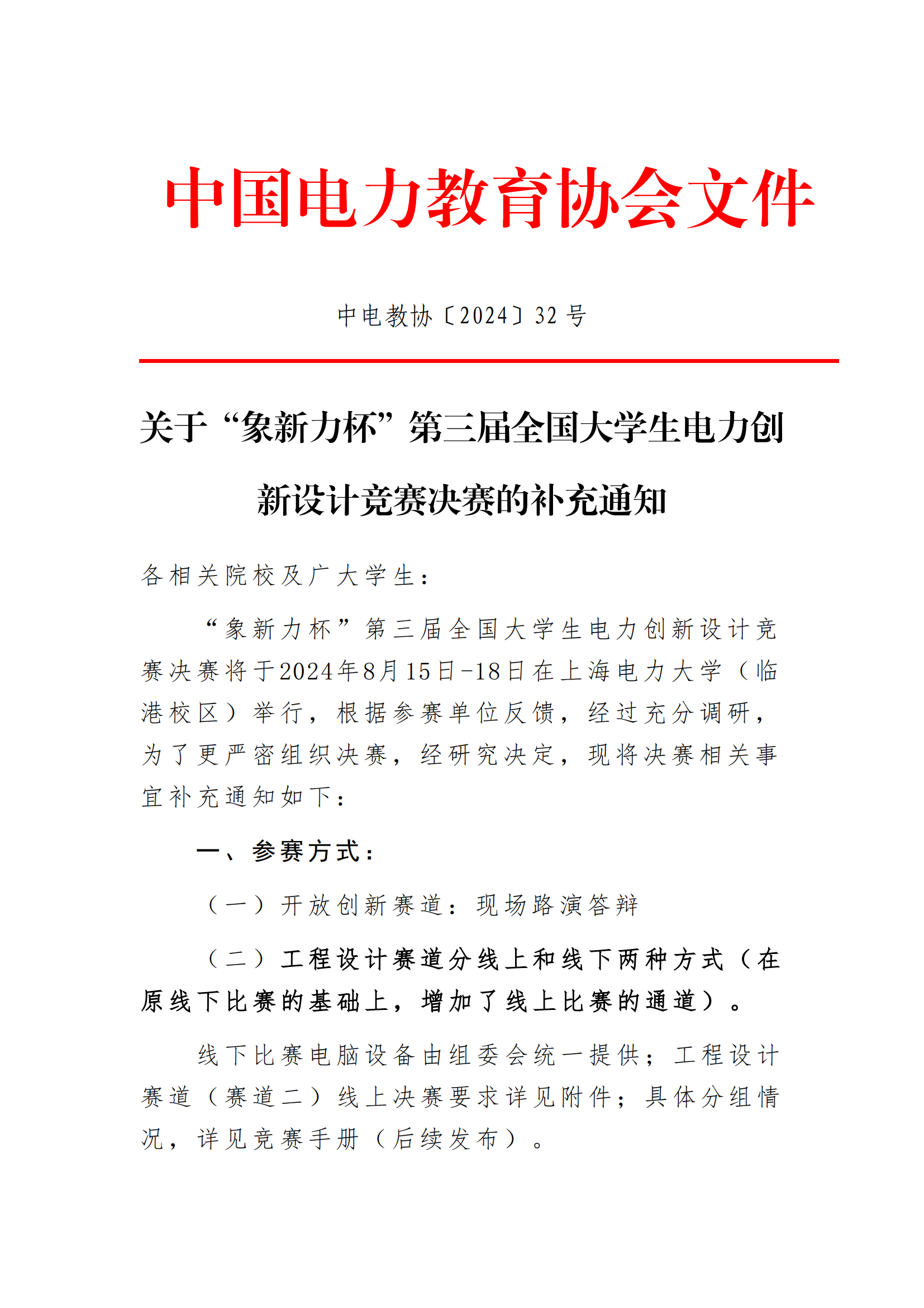中电教协[2024]32号关于象新力杯第三届全国大学生电力创新设计竞赛决赛的补充通知.pdf