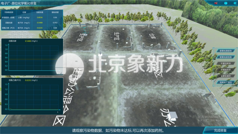 北京象新力围绕《土壤污染控制与修复》、《环境工程学》等课程的教学内容,以不同类型污染场地和修复技术为原型,研发了污染场地修复虚拟仿真软件,为学生和教师提供一个高度仿真的污染场地修复实验平台。