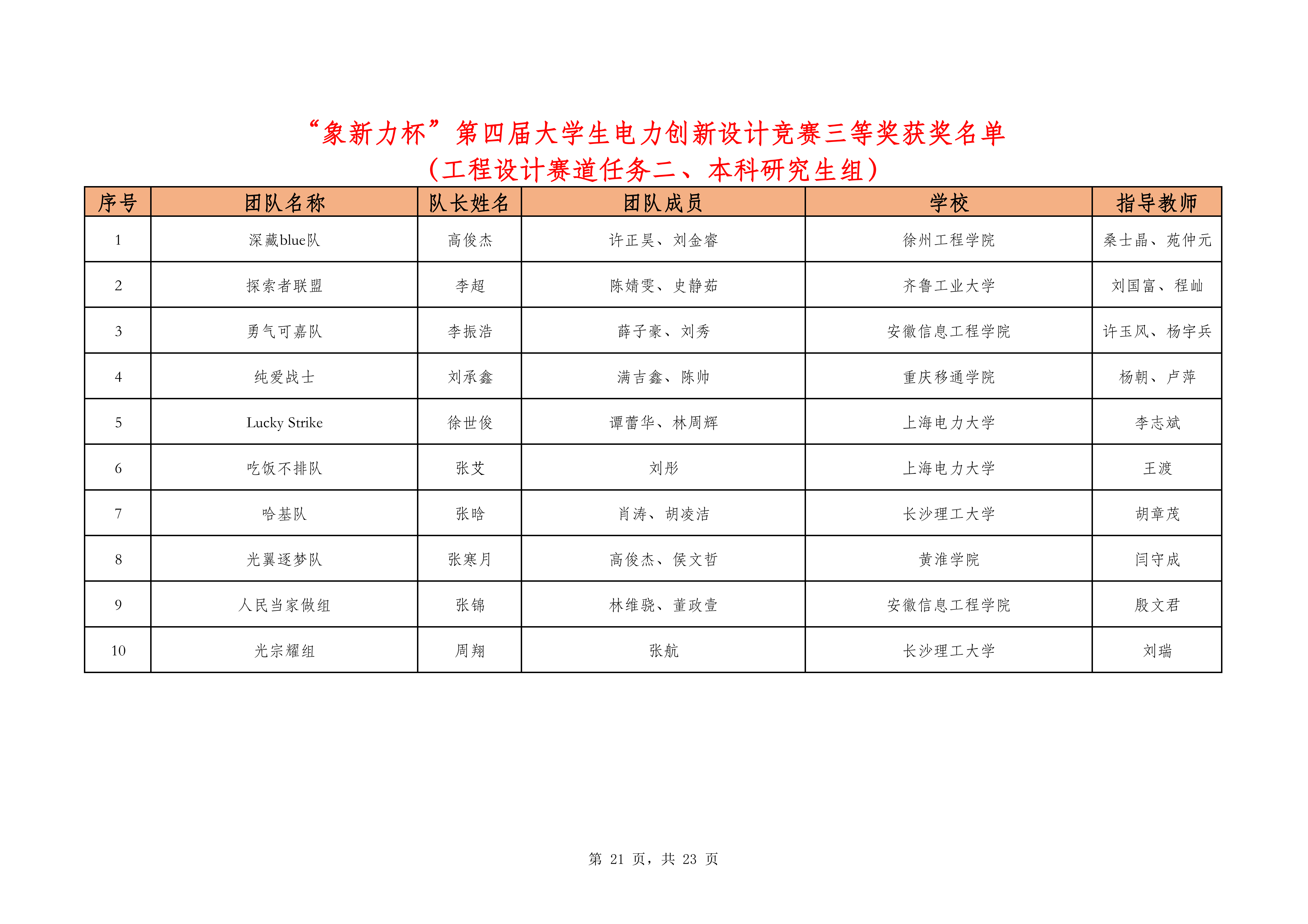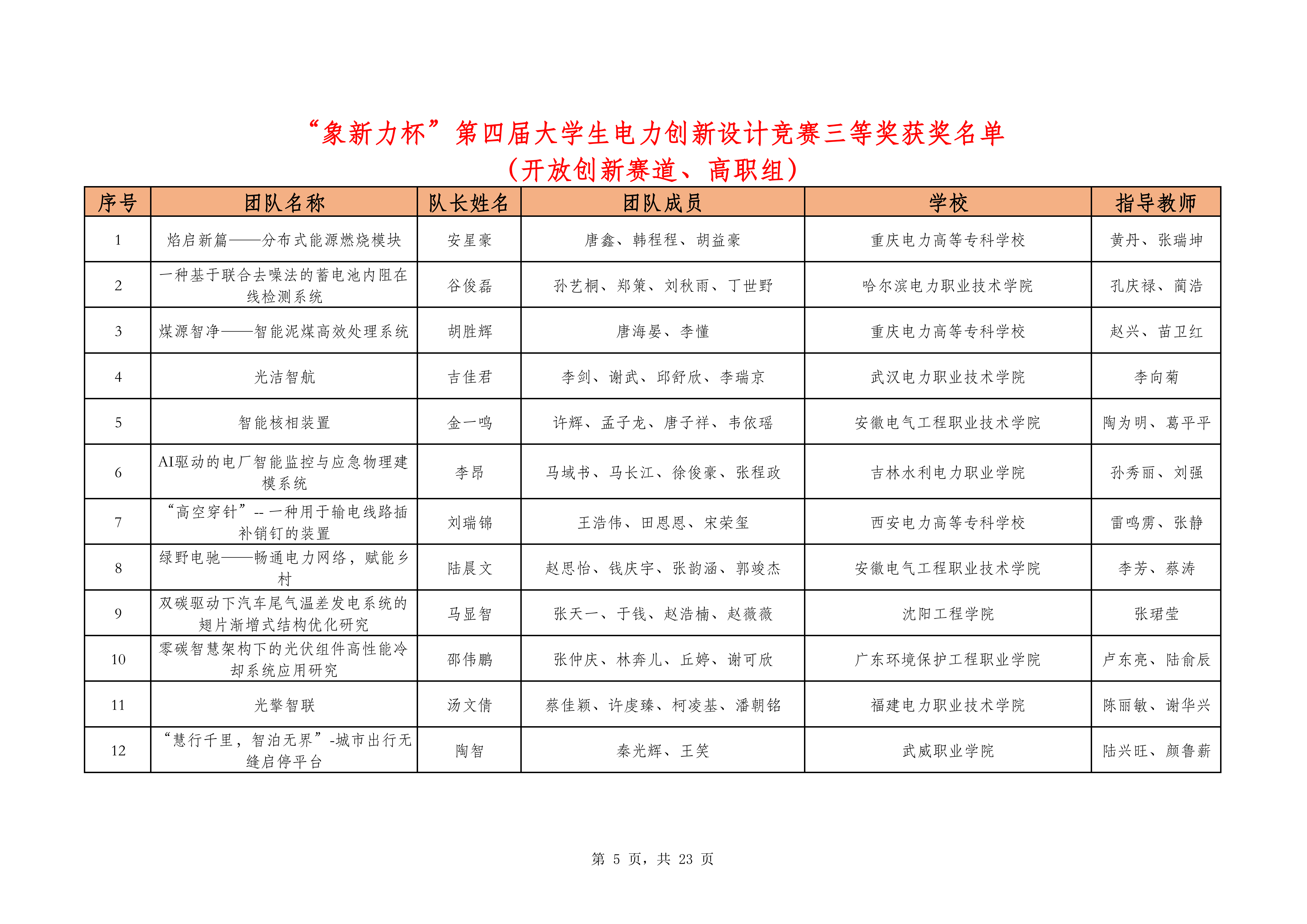 “象新力杯”第四届大学生电力创新设计竞赛,自2025年3月启动以来,受到各大高校师生的广泛关注和积极参与,现将决赛名单及三等奖获奖名单予以公示。