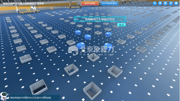 整个软件包含“系统学习”、“AGV 运动控制”、“智能路径规划”、“多 AGV 协同调度”、“故障分析与处理”五个模块,每个模块均包含多个交互步骤。