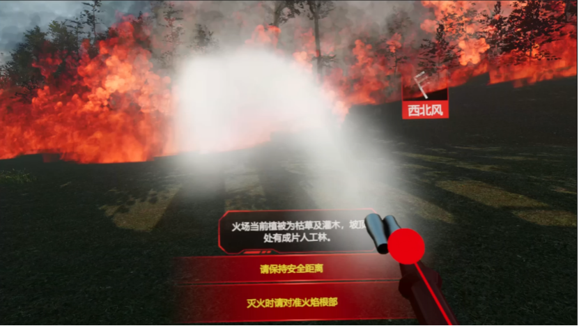 在软件端,系统精准还原了典型林相地貌,动态模拟火焰形态、烟雾浓度、蔓延路径和树木草丛燃烧时发出的各种声响,极大提升火场环境的真实性和压迫感。