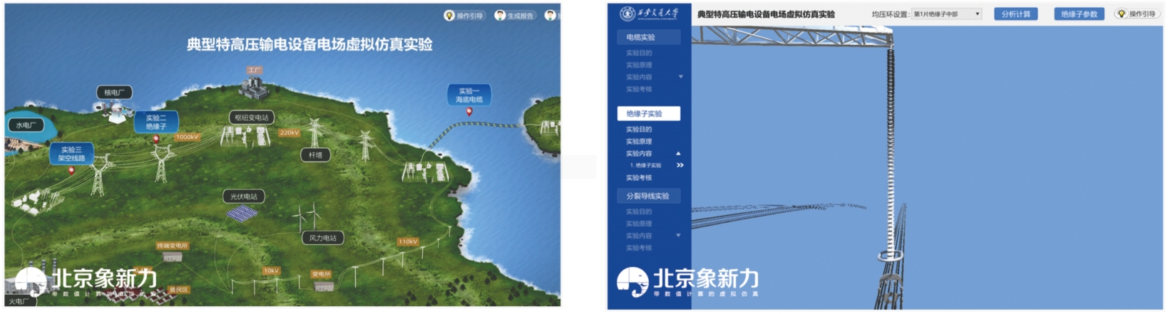 典型特高压输电设备电场虚拟仿真软件坚持以“学生为中心、问题牵引、自主探索”的实验教学理念,通过虚拟仿真技术构建了一个特高压输电设备电场虚拟仿真实验环境。在认知环节,学生可学习整个输变电过程中的主要设备及其作用,感性认知整个输变电系统。