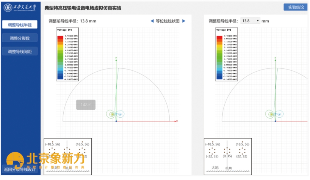 本虚拟仿真软件以电力电缆、特高压输电系统中的绝缘子和分裂导线为研究对象,借助虚拟仿真技术,采用与通用电磁场仿真软件ANSYS相兼容的建模方法,引导学生自行建模分析,以等位线和电场强度云图等形象直观地表示电力电缆内及特高压输电线路分裂导线和绝缘子周围的电场分布情况,使抽象的电场形象化。