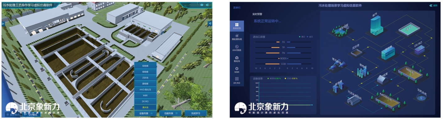 城市生活污水处理虚拟仿真软件基于数理模型计算,以国内先进的污水处理厂进行建模,包含了常见污水处理工艺流程所必须的构筑物单元。软件包括数据现象展示的三维部分以及底层机理模型算法支撑的二维模块部分。通过污水处理设备巡检及污水处理设备工艺操作,学习污水处理工艺常用设备原理、操作方法、关键参数以及污染物处理的相关知识。