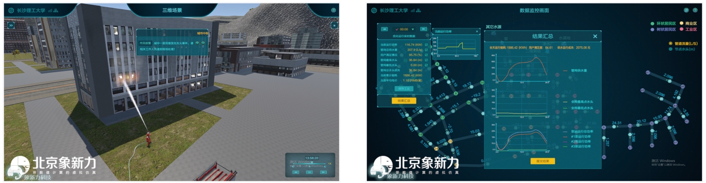 系统化仿真:软件系统全面的仿真了城市供水管网系统,包括自来水厂的工艺设备学习与运行、供水管路的统筹与分布、用水节点的数据监控与调等,系统的展示了城市供水管网系统。