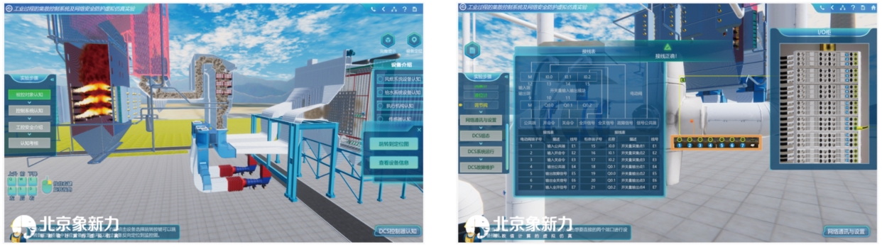 本虚拟仿真实验包括“认知学习”、"DCS控制系统调试运行”、“网络信息安全攻防演练"三个教学模块。针对1000MW火电厂中炉膛燃烧和除氧给水控制典型场景,进行整个自动控制系统DCS设计,开展传感器安装、现场接线、通讯管理装置参数设置、DCS逻辑组态、DCS界面组态、DCS系统运行等教学实践环节。DCS控制系统调试运行完成后,进行控制系统网络信息安全攻防演练。通过上述实验内容的实施,使学生对集散控制系统及工业控制网络安全有更深入理解和认识。