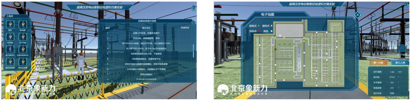 变电站运行操作实验,旨在解决学生和相关变电站的培训人员只能从书本图片中了解相关内容,以理论结合虚拟仿真技术为基础,手脑并用的教学模式更加有利于使用者熟练掌握变电站运行相关内容,省时省力节约资源,减低不熟悉变电站的相关操作的人在工作时遇到的危险指数,提高用户在运行工作时的安全意识等。