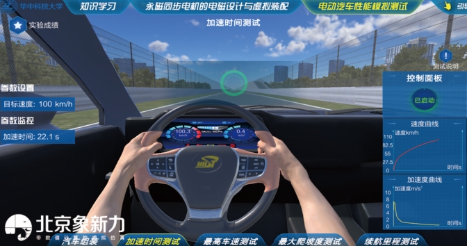 电动汽车驱动电机的设计与模拟验证以国内某品牌SUV为原型,根据车辆参数搭建了详细的电动汽车运动学仿真模型,保证了实验数据的真实性和正确性。该实验将项目需求分析、电机设计、虚拟装配、整车测试等内容融入实验流程,培养学生在电机设计与测试验证方面的综合设计能力。学生在虚拟仿真软件上进入实验,通过自主设计和自由探究,在不限标准答案的模式下,对电动汽车驱动电机的设计与模拟验证全流程的重要步骤和关键参数进行探究性设计和实验。实验完成后通过系统提交实验结果,系统可对实验结果进行自动评价与反馈。