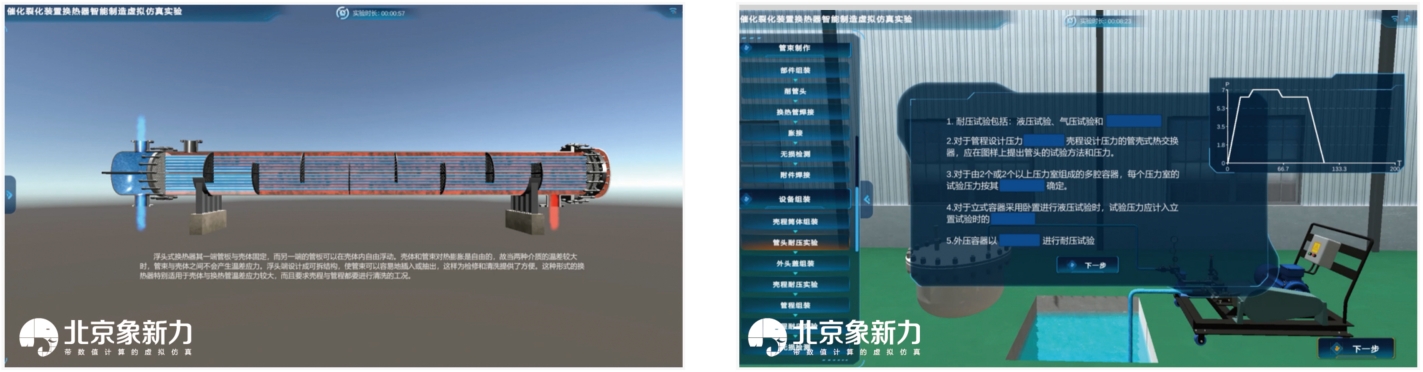 本实验是针对热交换器及其生产线外形庞大、承受载荷大、服役条件苛刻、可靠性要求高等特点,同时根据国内外设备制造技术发展动向为开发背景。学生通过实验的学习,了解催化裂化装置制造的工艺过程,掌握材料选择、钢材成型、焊接、设备的拼装、设备的制造以及检测等多方面知识和能力。实验以三维仿真技术为支撑,通过交互性实验步骤操作以及参数设定等步骤,加深学生对相应知识的认知和理解,丰富学生的想象力,提升实验教学效率。