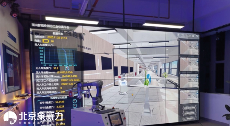 项目将5G、WiFi、无人机、无人车、六轴机器人、软硬件接口协议开发等相关技术进行研发及融合,实现了虚拟到现实、现实到虚拟的虚拟结合对应及控制功能,可展现VR/MR、虚实结合控制、飞机故障巡检、视觉检测分析、路径规划等多种功能。项目分为无人车巡检和无人机巡检两种巡检方式,巡检对象为国产大飞机。