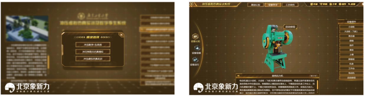 本系统用于材料工程数字孪生实验平台,可满足教学、实践等多种需求。系统与实验室现有冲床、工业机器人、流水线、传感器等多种设备进行数据传输,通过本系统对实验室现有设备进行动作控制,以虚拟仿真技术真实还原冲压自动化生产的生产场景。同时通过数字孪生技术,能将设备运动状态及设备实时参数同态映射出来。