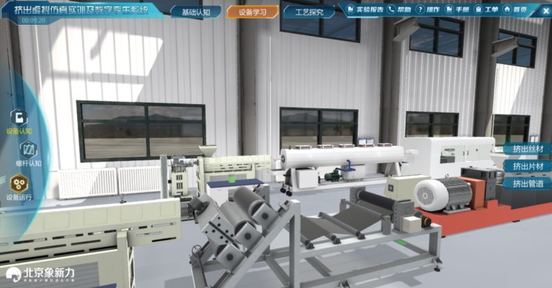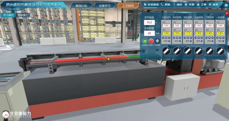 学生可在虚拟的挤出环境中进行挤出成型的理论学习、操作训练和实验考核操作训练,本挤出虚拟仿真实训系统各操作流程符合真实挤出成型车间逻辑,与真实挤出场景相符合。通过本挤出虚拟仿真实训系统的学习,完整了解挤出模具结构及工艺流程,熟悉各流程的关键工艺要点,掌握相应的知识点。