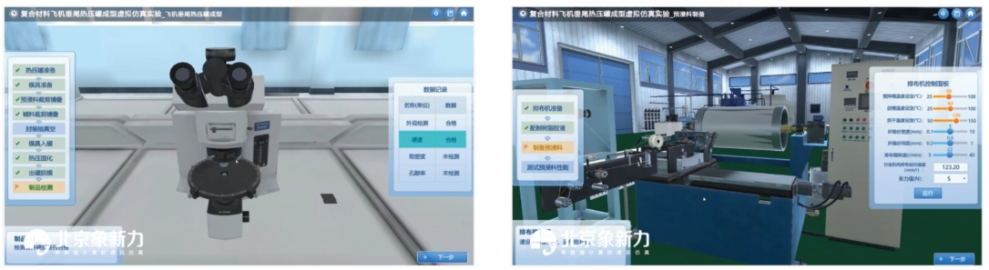 工艺过程完整:该实验从预浸料制备开始到模具准备,最后进行热压罐成型,包含了一整套完整的碳纤维复合材料热压罐成型工艺流程;参数设定灵活:在热压罐成型工艺中,学生可任意调整工艺参数,并查看成型件检测结果及缺陷原因。