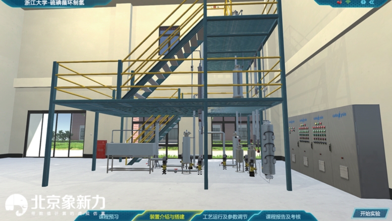实验装置搭建:参考实际实验装置,介绍各个部分,管道、阀门、控制器的工作原理。除了包含有硫碘循环制氢的各个工艺段,也包含了化学与化工最基础的泵、管道、阀门、传质与传热等的基础。