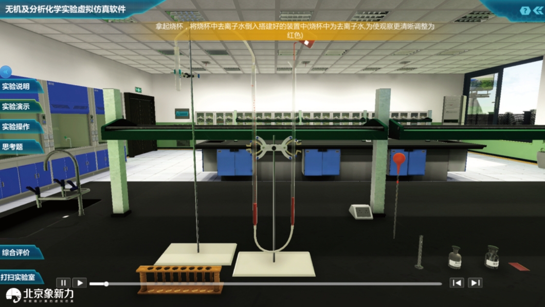 (2)对真实实验室进行完整的三维建模,学生除了进行实验内容操作,还要学习实验室安全及规范,陪养学生良好的实验习惯。