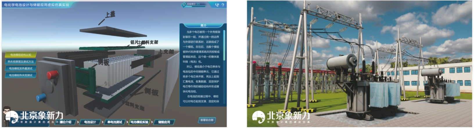 本软件以电化学电池制作工艺和实际储能应用场景为原型,通过三维虚拟仿真技术,建立电化学电池设计、电 池功能设计及储能应用三维场景模型。旨在让学生了解电化学结构、原理及技术特点,了解电化学电池应用场景, 可自主、探究地进行电池类型选择设计、电池模组性能验证、储能场景模拟运行,以满足不同负荷场景的需求。